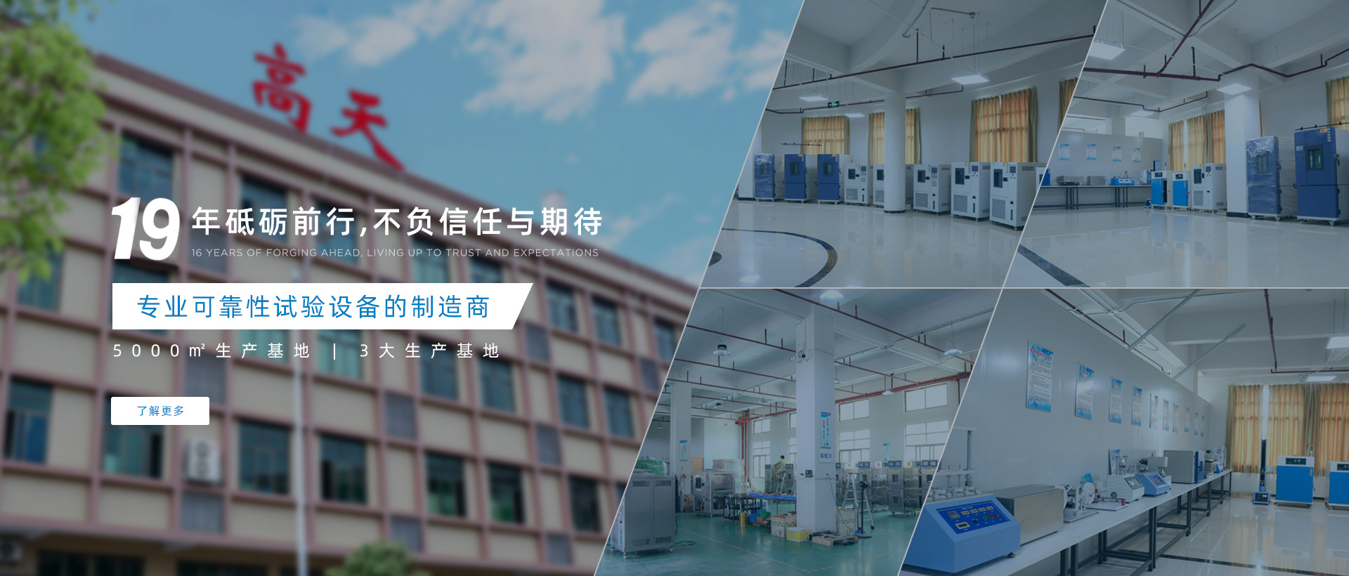 東莞市高天試驗(yàn)設(shè)備有限公司是一家可靠性試驗(yàn)設(shè)備的制造商,我們專注于可靠性試驗(yàn)已有19余年,在此期間,我們竭盡所能,努力為客戶提供完善的實(shí)驗(yàn)室規(guī)劃方案,匹配質(zhì)優(yōu)價(jià)廉的試驗(yàn)設(shè)備。高天擁有完整的研發(fā)團(tuán)隊(duì),其中有很多人都躋身試驗(yàn)設(shè)備行業(yè)多年,能為顧客提供完善的技術(shù)方案,以幫助廣大客戶在確保其產(chǎn)品品質(zhì)的前提下,有效降低經(jīng)營成本,提升經(jīng)營競(jìng)爭(zhēng)優(yōu)勢(shì)。高天生產(chǎn)的設(shè)備種類眾多,同時(shí)擁有實(shí)用新型專利證書,銷售范圍覆蓋全國。公司自成立以來堅(jiān)決以精美的外觀設(shè)計(jì),認(rèn)真務(wù)實(shí)的工作精神,良好周到的后續(xù)服務(wù),贏得了客戶良好的口碑。我們將一如既往,堅(jiān)持以“誠信經(jīng)營”為...
